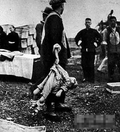 那时,南京一段的长江水面到处漂浮着死尸,长江成了“尸江”。殷红的血水、腐臭的尸液将江面污染得怪味冲天,一些水鸟居然停在顺流漂浮的死尸上啄肉取食,据说连江里的鱼都开始吃人肉了,十几里外就能闻到令人作呕的刺鼻血腥味。被强征来的收尸人员就要穿梭于这恐怖的尸山血海间,每人每天要处理几十具甚至上百具尸体,动作稍慢就要被监管的日军兽兵拳打脚踢、秽语侮辱。有个收尸的南京市民被打急了,不过下意识地回瞪了矮墩墩的小个子日本兵一眼,就被一刺刀从前胸捅到后背。刚才还在收尸,转眼,自己也成了尸堆中的一员。